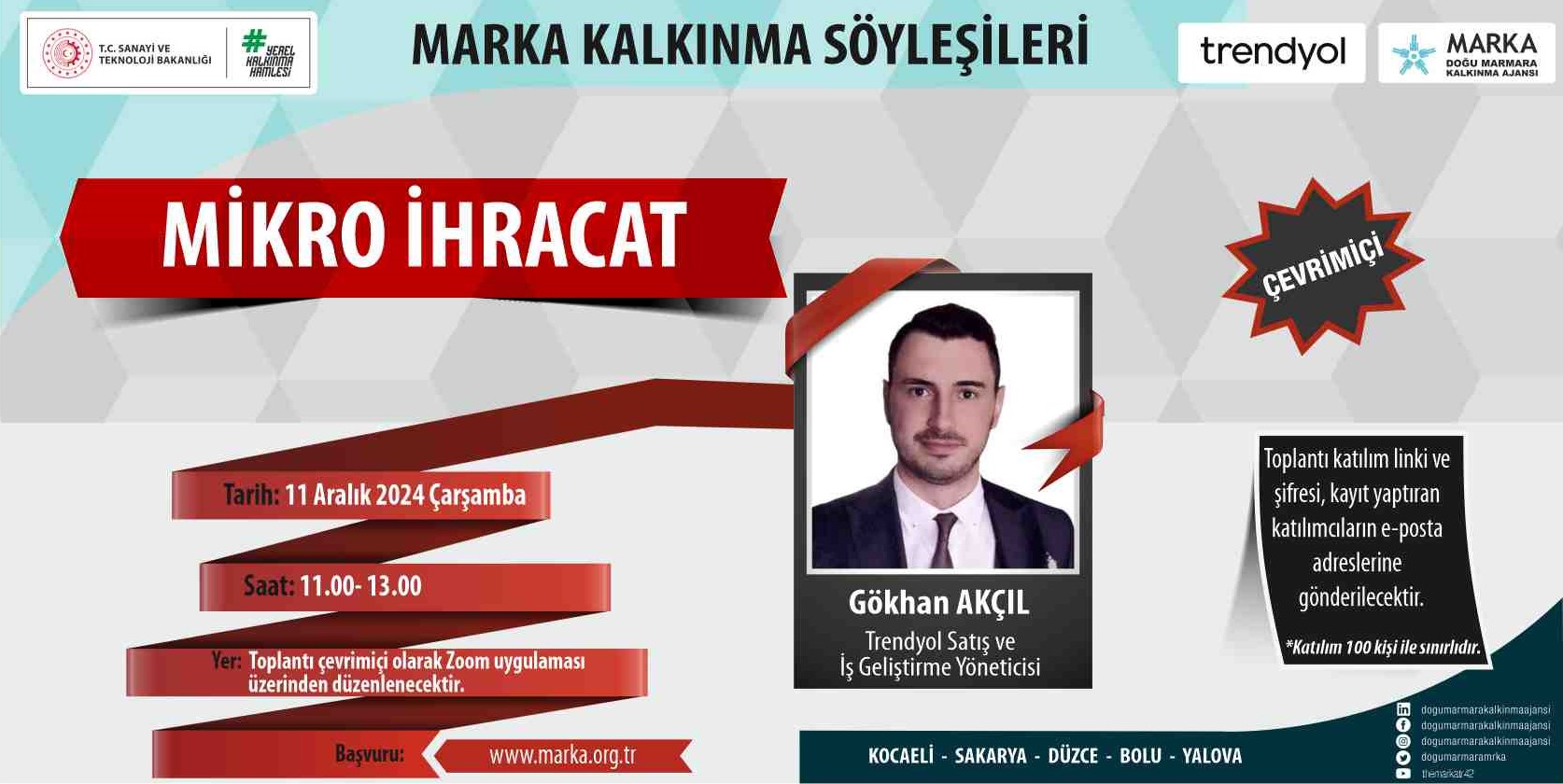 Bu kapsamda Aralık ayında “Mikro İhracat” temasıyla gerçekleştireceğimiz söyleşiye Trendyol Satış ve İş Geliştirme Yöneticisi Gökhan AKÇIL konuşmacı olarak katılacaktır.